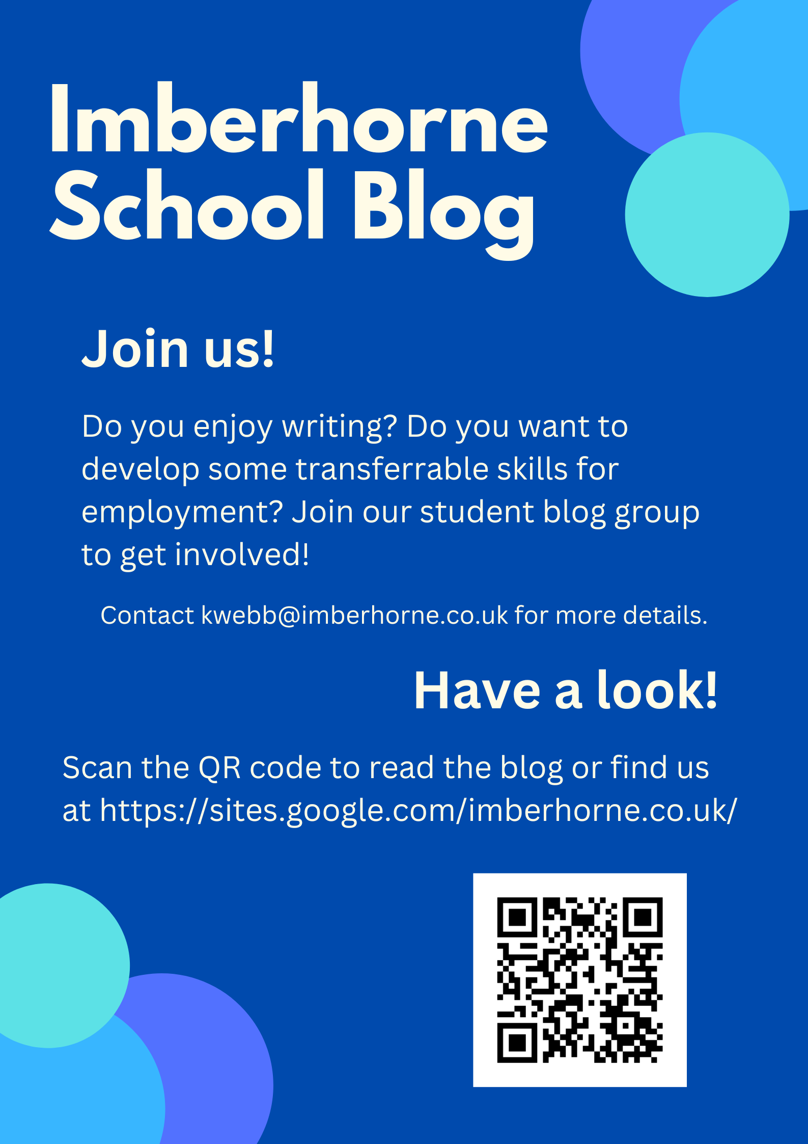 Miss Webb, English Teacher and Blog Group Leader is keen for more students to join in - please get in touch with Miss Webb for more details on how to share your writing and ideas. Well done to everyone involved for their effort to get this far.
