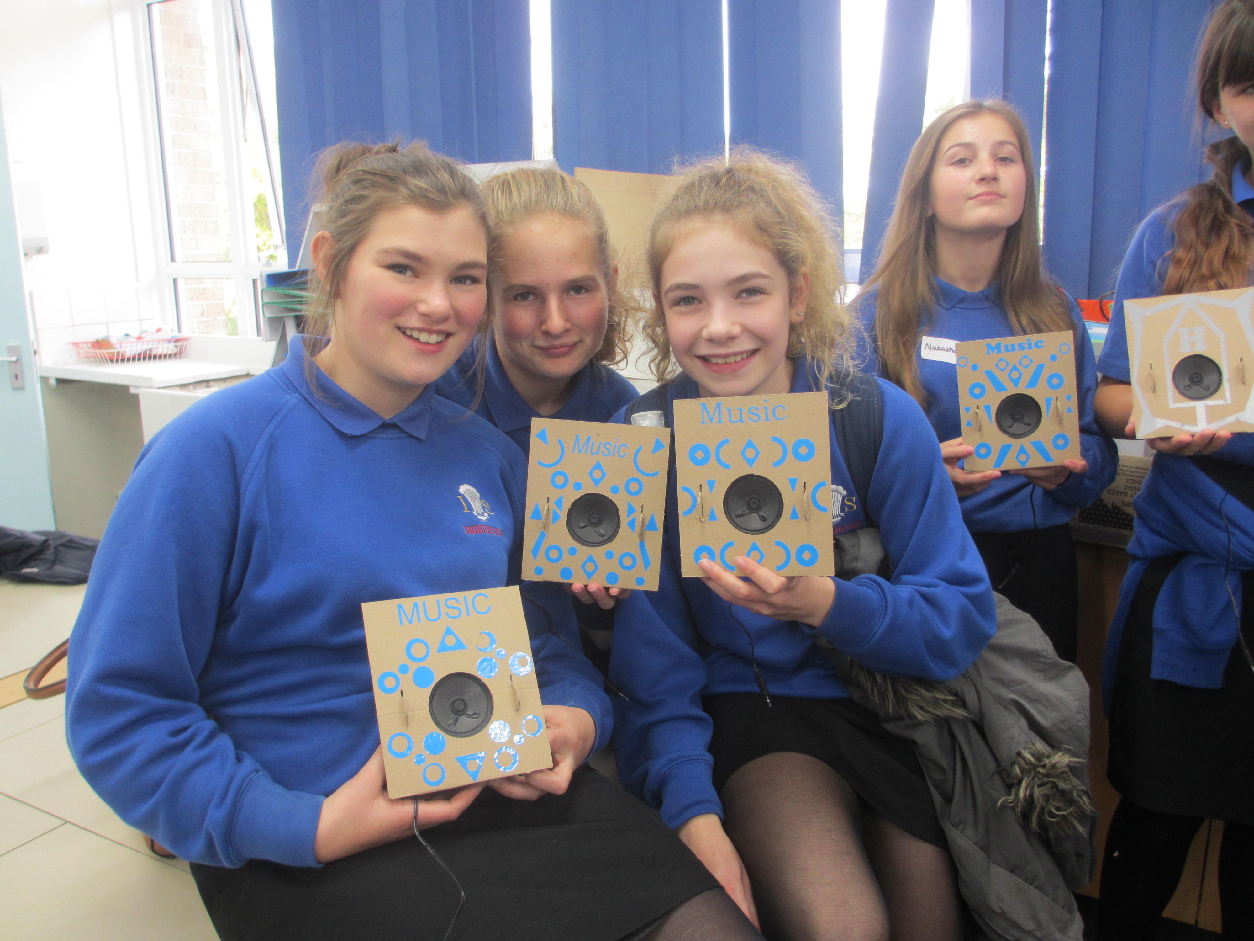 The electronics session allowed students to gain an understanding of the components used in an amplifier circuit and gave them the opportunity to source and solder these in position. Every one of the students managed to complete working circuits in the short time available. Such an impressive achievement.